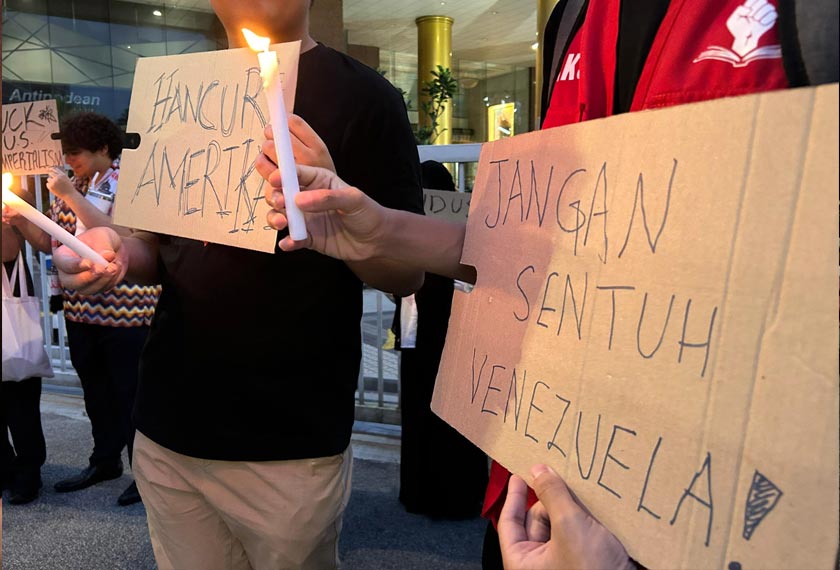 KUALA LUMPUR: Puluhan warga kota berhimpun menyalakan lilin menyatakan sokongan kepada Venezuela dan membantah tindakan Amerika Syarikat.